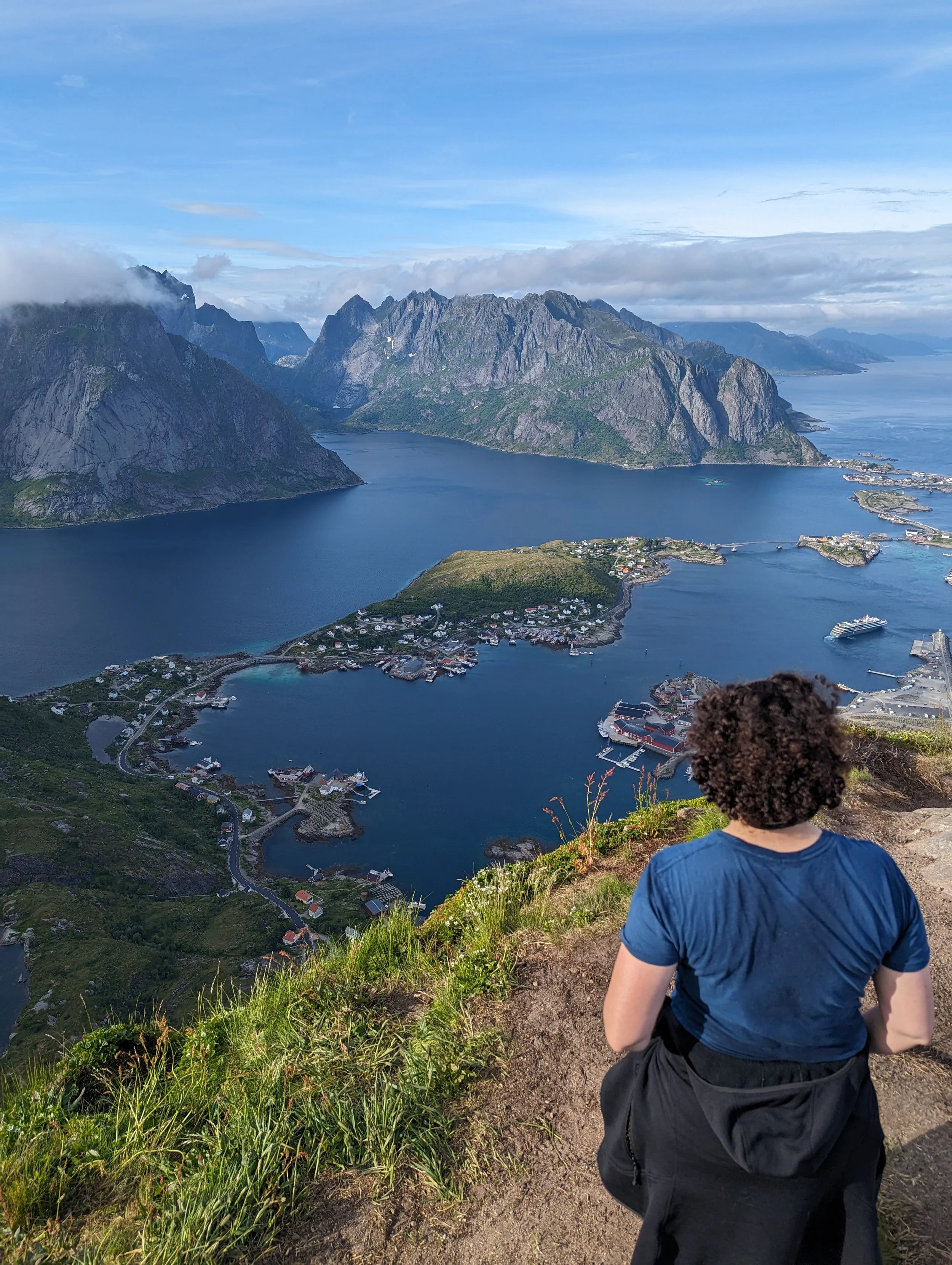 July, 2023 at the top of Reinebringen in Norway. 1600 feet in 7/10ths of a mile. Took about 50 minutes. Very different than Cinque Terre 19 years earlier.